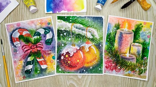 Как нарисовать новогоднюю открытку акварелью поэтапно. Акварель для начинающих