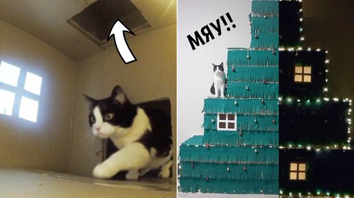 Четырехэтажный новогодний домик-лабиринт для кота. Показываю как он среагировал