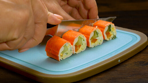 Закусочные рулетики « под суши» за 10 минут. Ярко, нарядно и очень вкусно — разлетаются с тарелки всегда на ура