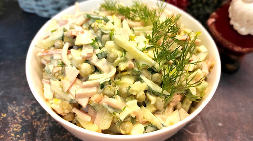 Салат с ветчиной и зелёным горошком! Вкуснее, чем Оливье!