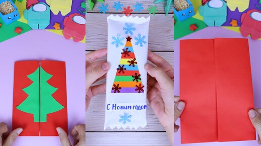 Подарок на Новый год своими руками Шоколадка + открытка с елочкой из бумаги и картона
