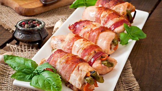 МЯСНЫЕ,СЫРНЫЕ,СОЧНЫЕ,КРАСИВЫЕ КУРИНЫЕ РУЛЕТИКИ В БЕКОНЕ!Закуска для праздничного стола!