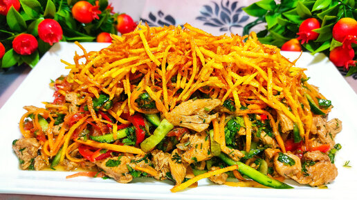 Новый рецепт салата на новогодний стол 2022. Салат без майонеза с курицей и овощами