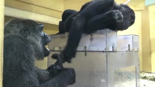 Вот что значит материнский инстинкт. Каждая самка гориллы мечтает потрогать малыша