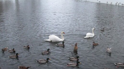 Лебеди Гатчинского парка зимой: Гоша, Айседора и Серебрянка
