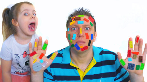Дети и папа играют в Лего - Веселое видео для детей