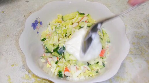 Салат на Новый Год ,,Русалка,, с крабовыми палочками,огурцом и плавленным сырком.