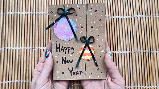 Новогодняя открытка "Акварельные шары"