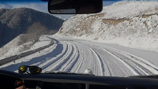 И красиво и страшно. Спуск по обледеневшему горному перевалу.