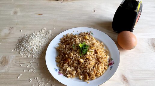 Жаренный рис с яйцом и соевым соусом. Простой гарнир из трех ингредиентов