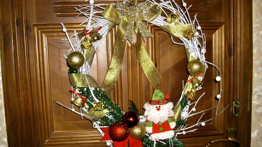 Как сделать венок на Новый год и Рождество из веток на дверь №2. Новогодний декор своими руками.