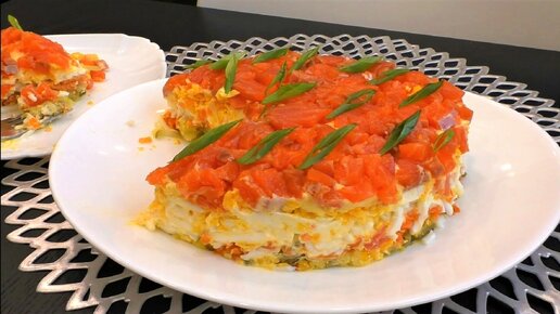 Праздничный салат с красной рыбой, нежный и очень вкусный.