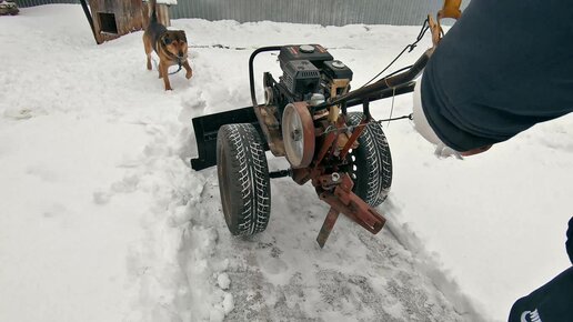 Чистим мокрый снег двумя мотоблоками МБ-1 и Aurora 1400