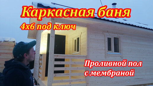 Тёплая КАРКАСНАЯ БАНЯ 6х4 под ключ с проливным полом от СК Доминика
