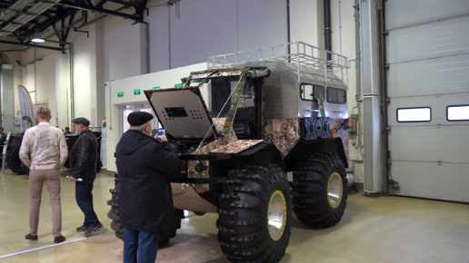 Вездеход "Vanguard" снаружи и внутри на выставке в ЦВК "Экспоцентр" в городе Москве