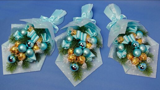 Мини букет на Новый Год за 15 минут своими руками. Сделай сам сладкий презент из конфет