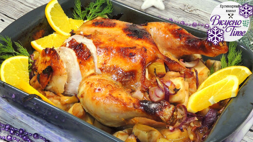 Новогоднее меню. Просто, но так вкусно! Запеченная курица с яблоками в апельсиновом маринаде