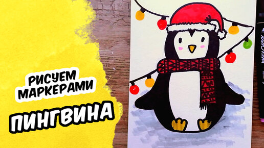МИЛЫЙ ПИНГВИН: Как нарисовать простой новогодний рисунок маркерами