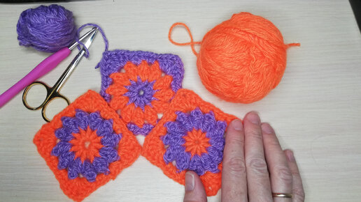 Далее: Нашла ещё один очень красивый и объёмный цветочный квадратный мотивчик крючком