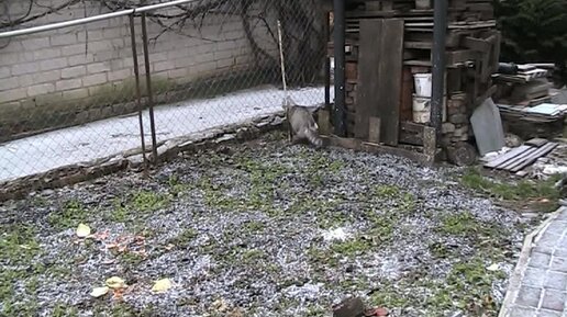 Киска Умка проверила свою территорию,а кот Рыжик был в загуле,сейчас отсыпается в моей столярке.