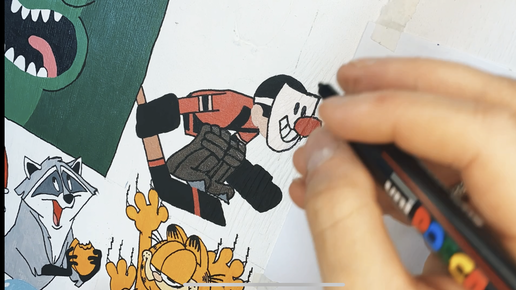 Рисую харизматичного хоккеиста. Cartoon wall #27