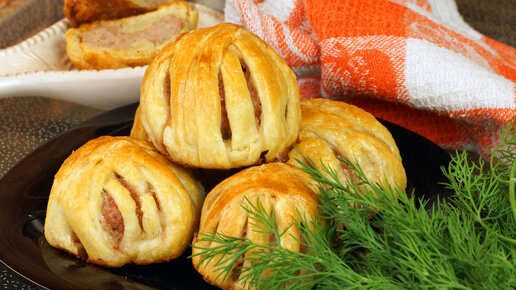 ПОКУПНОЕ СЛОЕНОЕ ТЕСТО И МЯСНОЙ ФАРШ - ИДЕЯ БЫСТРОЙ ЗАКУСКИ