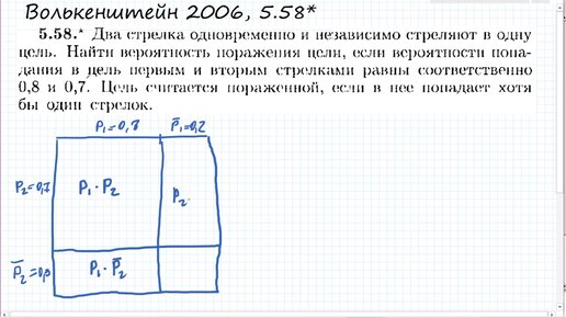 Теория вероятностей. Два стрелка стреляют по мишени. Волькенштейн 5.58