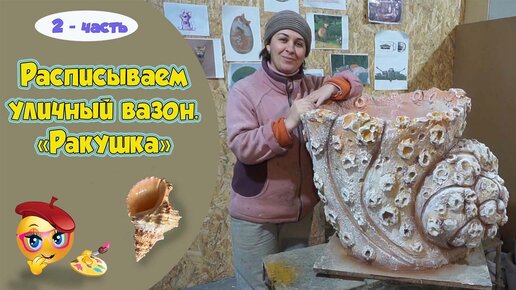 Уличный вазон. Кашпо для цветов в виде морской ракушки. Роспись.