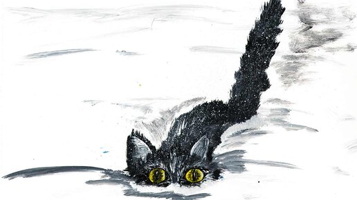 Как нарисовать кота в сугробе. Рисуем кота в снегу. Правополушарное рисование.