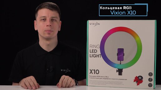 Кольцевая RGB лампа / светодиодное кольцо VIXION X10 с держателем для смартфона и пультом управления 38см. Обзор