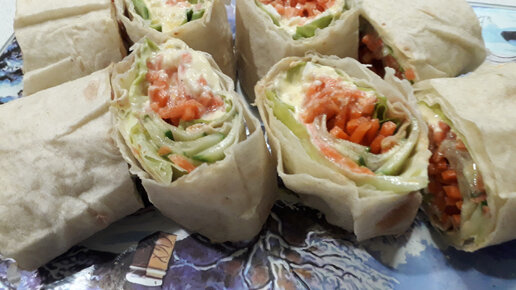 Закуска на новогодний стол из лаваша и моркови по-корейски
