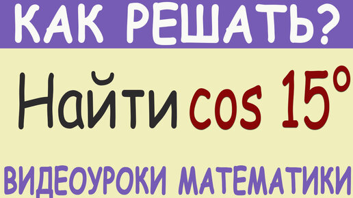 Как найти, чему равен cos 15 градусов? Тригонометрия 10 класс. Подробное решение