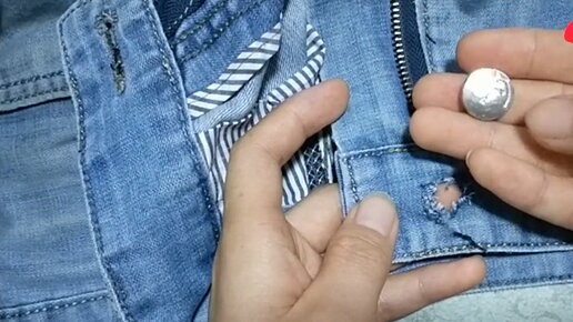 Как поставить пуговицу - кнопку на джинсы. Ремонт джинсов.