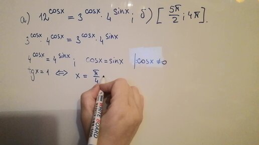 №12 из нового профильного ЕГЭ по математике. Показательное уравнение и тригонометрия.