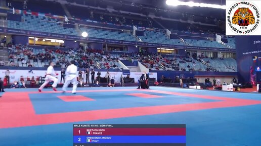 Полуфинал чемпионата мира по каратэ Франция против Италии. Нога просвистела над головой.