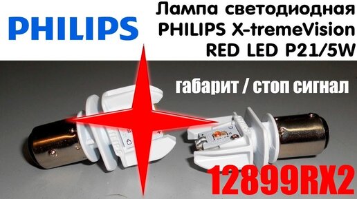 Обзор на лампа светодиодная PHILIPS X-tremeVision RED LED P21/5W 12899RX2