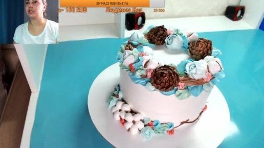 Новогодний Венок из Шишек и Роз Белково Заварной Крем Танинторт