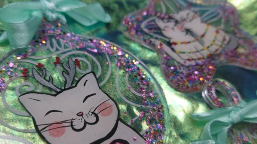 Набор елочных игрушек с котиками- в каждом шарике свой котик.