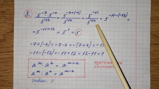 8)Найдите значение выражения 5^-7•5^-4/5^-12. Огэ по математике. Решу огэ. Разбор огэ. Огэ математика. Вариант 11, номер 9, стра