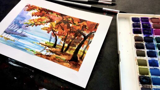 КАК НАРИСОВАТЬ ОСЕННИЙ ЛЕС | УРОК РИСОВАНИЯ АКВАРЕЛЬЮ