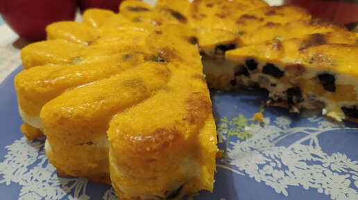 Творожно–тыквенная слоёная запеканка с изюмом и лимонной цедрой.