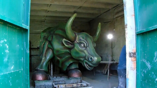 скульптура быка.10 тонн весом .как вытащить скульптуру из мастерской. фильм 1