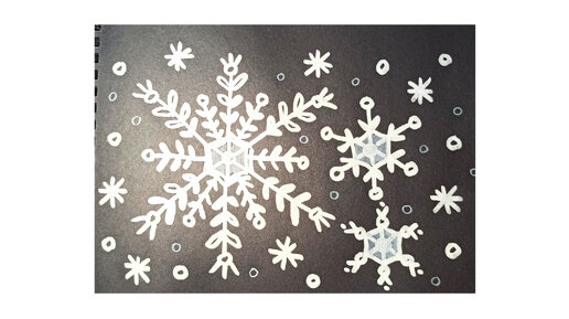 Как нарисовать снежинки фломастером. Рисунок на черной бумаге.