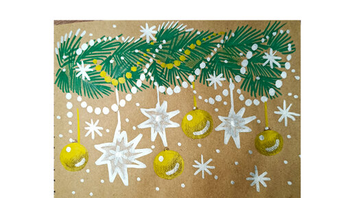 Как очень просто нарисовать Новогоднюю открытку фломастерами на тонированной бумаге.