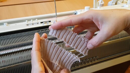 Вязание одинаковых деталей подряд на вязальной машине / Аккуратное начало вязания / Переход от ластика 2+2 к ластику 2+2