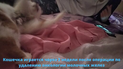 Кошка активно играет спустя две недели после операции по удалению опухоли молочных желез