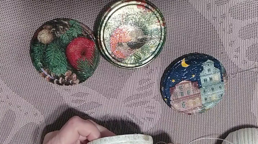 🎄 Елочные игрушки из железных крышек от старых банок! Декупаж мастер класс.