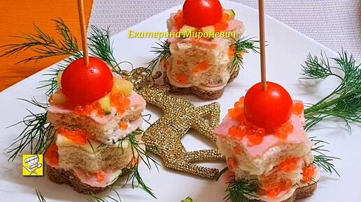 Быстрые мини- бутерброды на праздничный стол! Канапе на шпажках с ветчиной и сыром!👍😋