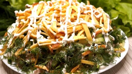 Салат "Соломка" нежный и лёгкий, покорит гостей своим вкусом