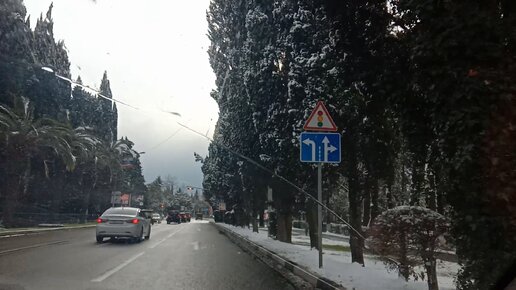 Сочи, 23.12.2021, едем из с. Орёл-Изумруд на пляж "Огонёк" в Адлере, по заснеженным улицам.